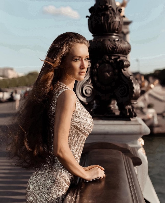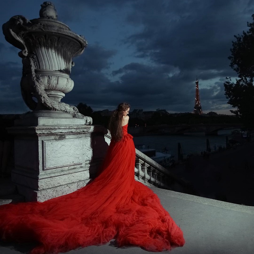 "The dress was beautiful, though impractical. It was a feature shoot for an event taking place outside of Paris, you can make out the Eiffel Tower in the distance. It was published in L’Officiel."